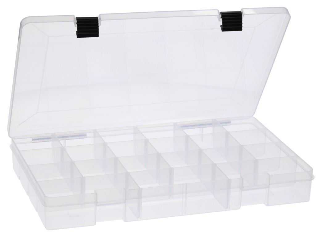 - Drobnosti s podobnou funkcí držte v jednom boxu (např. „háčky a dorazy“, „olova a krmítka“, „method a formy“) a boxy jasně označte.