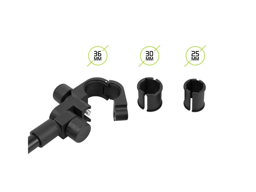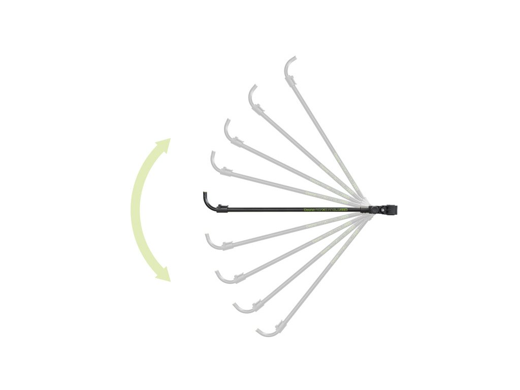 Kloubový mechanismus s otočným regulátorem umožňuje nastavení ramene v různých polohách podle toho, zda chcete lovit se špičkou při hladině nebo co nejvýše nad vodou. Rameno je navíc také výsuvné, fixovatelné plastovým zavíracím klipem a lze jej použít s různými délkami prutů. Použitý mechanismus výrazně zvyšuje celkovou variabilitu produktu a tím pádem je rameno použitelné v rozličných podmínkách a situacích, které vás u vody mohou potkat.