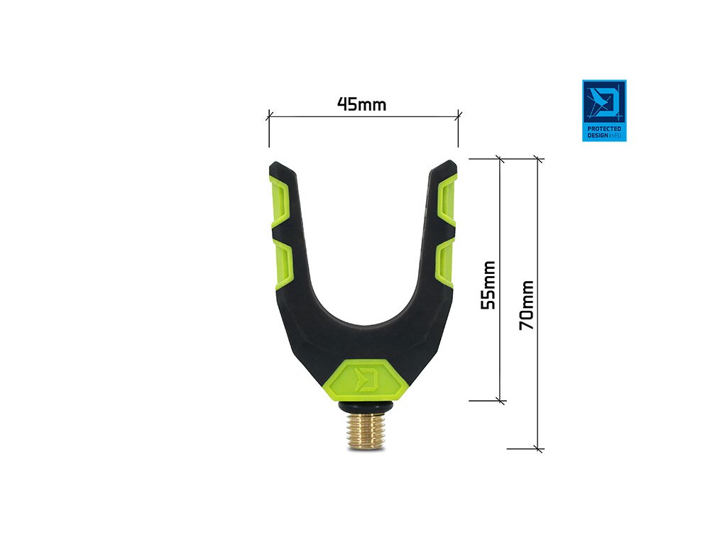 Zadní držák prutu tvaru U, navržený v barvách inovativní feederové série Delphin Reaxe.