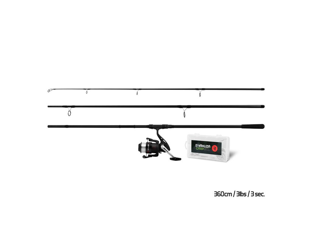 Základem je třídílný prut YAKUZA o délce 360cm a parabolickou akcí, která vám dokonale umožní vychutnat si zdolávání i menších kaprů či jiných ryb. Prut má samozřejmě dostatečnou silovou rezervu k tomu, aby si poradil i s kapitálními úlovky, či přesným nahazováním na lovné místo.