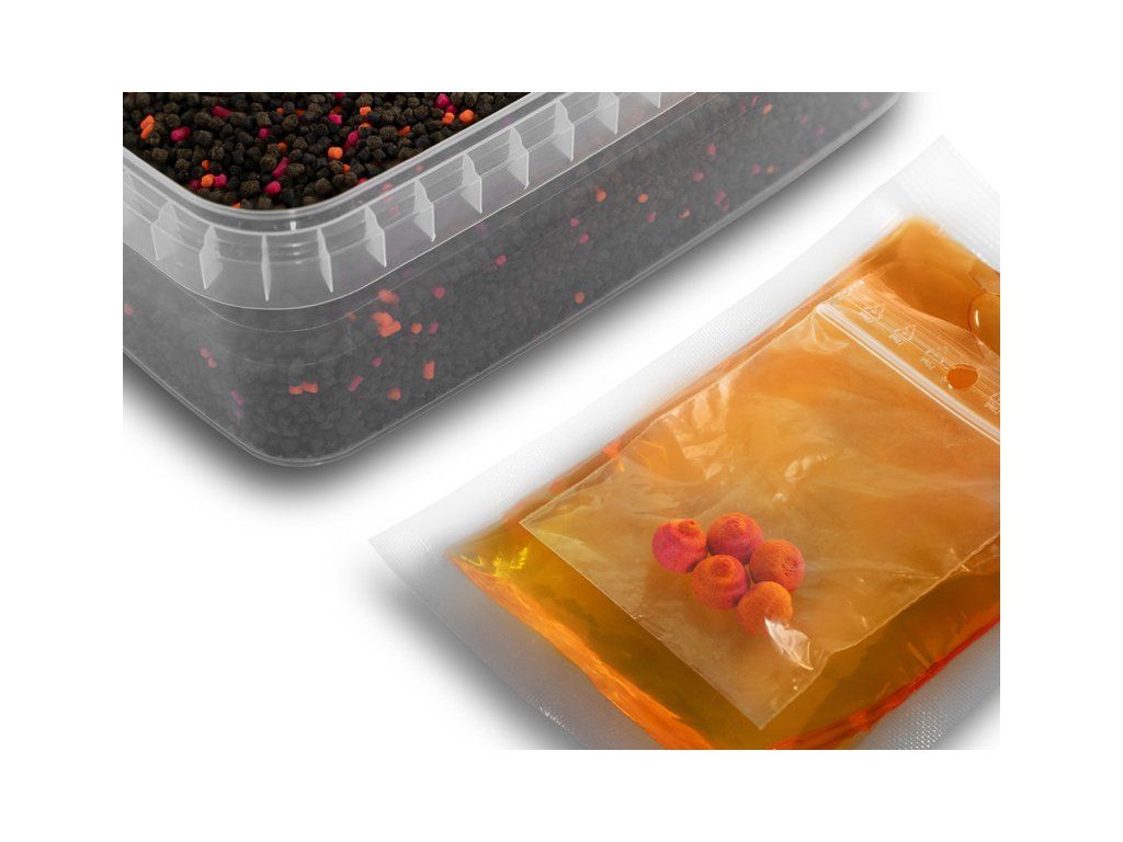 Když chci u methody rychle vyvolat záběr, nechci laborovat s vodou a lepivostí. Tenhle pellet box to řeší jednoduše: otevřu, zaliju přiloženým boosterem, promíchám a nechám dojít. Mikropeletky s vyšším obsahem bílkovin v kombinaci s ochucenými peletkami rozjedou potravní signál hned po dopadu. Booster je odměřený tak, aby směs perfektně držela ve formičce a krmítku, ale po dosednutí na dno se okamžitě začne uvolňovat. Jako třešnička jsou v boxu 10mm neutrálně vyvážené D‑SNAX SHELL wafters – pomalu se rozpouští a dělají kolem háčku to správné „halo“. Set je vyladěný pro celoroční lov a zaboostrované mikropelety můžete bez obav použít i do PVA sáčků či síťek.