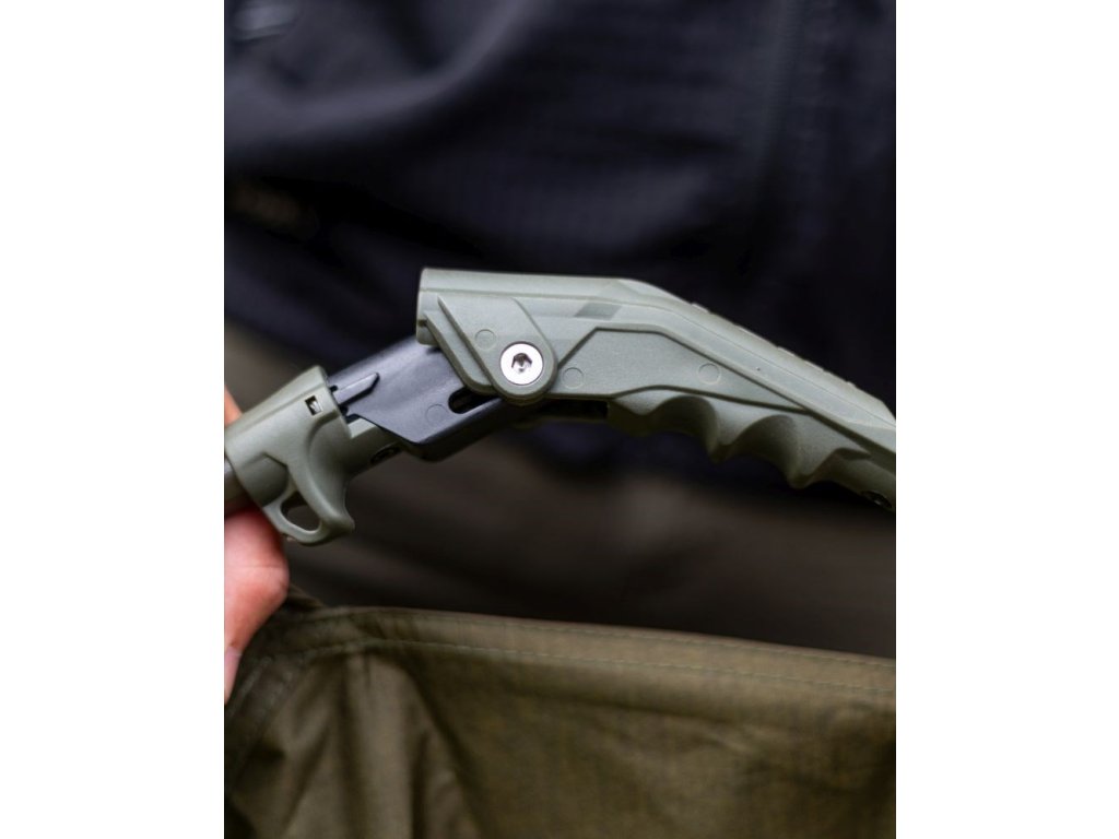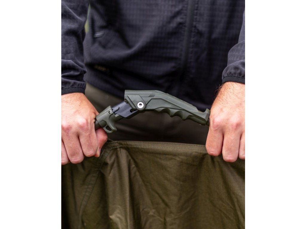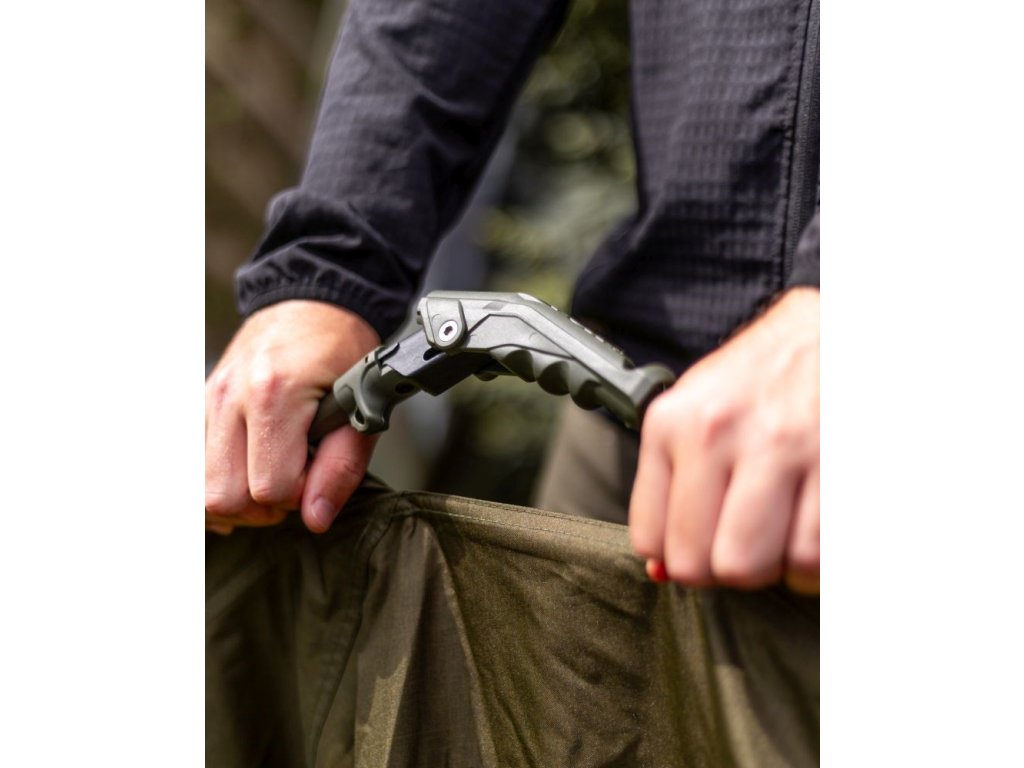 - Po skončení lovu uvolněte rychlou spoušť na středu ETS, složte tyče a vše uložte do dvojitého zipového přepravního vaku spolu s kolíky a napínacími šňůrami.