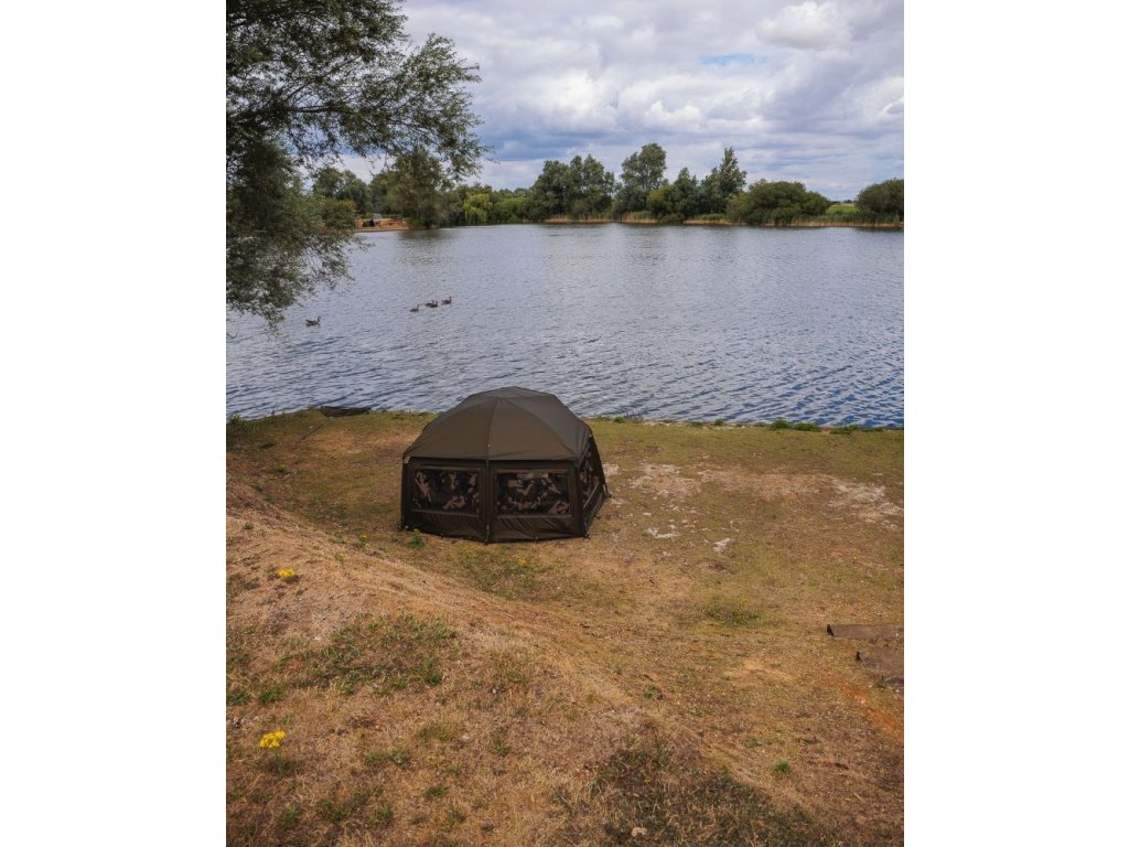 Jeho srdcem je 100% Polyester khaki VenTec látka s černě laminovanou vnitřní stranou a impozantním vodním sloupcem 20.000mm, což znamená jediné – budete v suchu. Lehký hliníkový rám s vysokou rovnou zadní stranou zajišťuje maximální prostor nad hlavou a vnitřní prostor o rozměrech 250 x 185 x 130 cm, který je více než dostatečný pro jednoho rybáře s kompletním vybavením. Navíc, díky novému středovému systému ETS BOSS (Easy Tension System) s bránicím proti rozložení rámu a ergonomickým kloubovým spojkám s pružinou, je postavení bivaku otázkou několika málo okamžiků. Už žádné zdlouhavé a komplikované stavění – víc času na to, co je nejdůležitější: chytání ryb.
