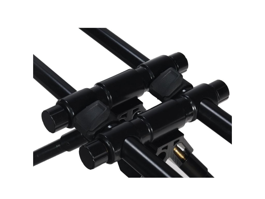 Posuvný mechanizmus hlavní části, Vám zajistí široké možnosti nastavení tohoto stojanu a k tomu dopomáhají široce nastavitelné přední, tak zadní nohy. Součástí stojanu jsou dvě hrazdy na tři pruty, ale lze si dokoupit hrazdy na dva pruty.