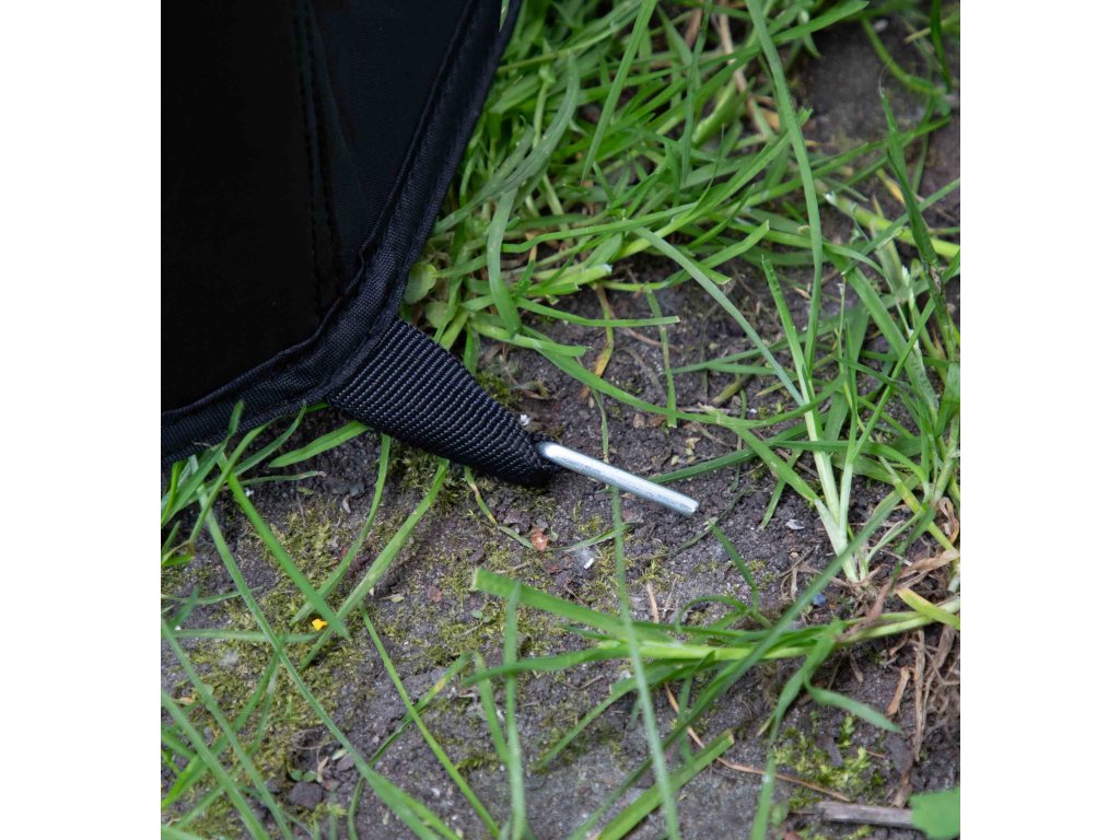 - Na měkké břehy vezměte zemní šroub a delší bouřkové kolíky; stabilita jde nahoru okamžitě.