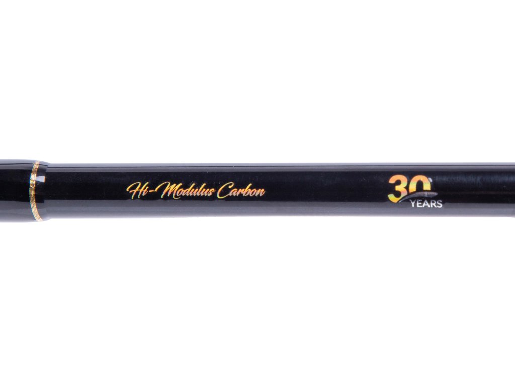 Neuvěřitelně lehký a tenký 30T karbonový blank s obrovskou rezervou výkonu, osazen očky Seaguide a spolehlivým sedlem navijáku.