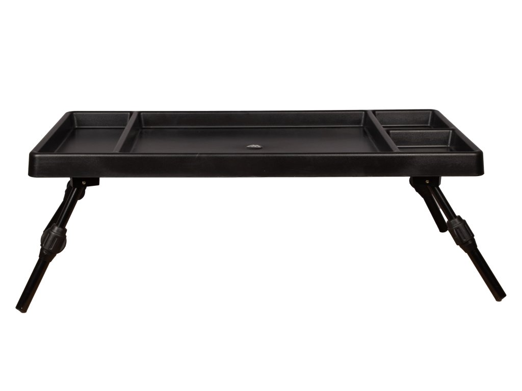 Stolek, který udrží pořádek i tempo výpravy. Polypropylenová (PP) konstrukce kombinuje nízkou hmotnost s odolností vůči vlhkosti a běžnému opotřebení, takže se nebojí ranní rosy ani rychlých přesunů. Čtyři výškově nastavitelné nohy dovolí srovnat plochu na břehu, v bivaku i na nerovném podkladu kolem vody. Profilovaná horní deska s přihrádkami drží drobnosti přesně tam, kde je čekáte – zarážky, broky, obratlíky nebo jehly nebudou migrovat po ploše a práce je plynulejší.