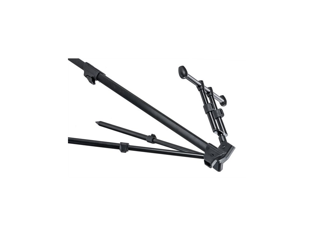Kompaktní, lehký a dokonale stabilní stojan na pruty s unikátním systémem rychlého skládání. Nepotřebujete žádné šrouby. Rozložení všech částí, nastavení délky či vyklopení teleskopických noh je otázkou několika vteřin. Vše je řešeno unikátním systémem na zacvaknutí. Stojan je vybaven hrazdami na dva pruty s nastavitelnou výškou. Nastavit můžete i délku stojanu a samozřejmě i délku teleskopických noh. Stojan je ideální pro lov s krátkými stalkerovými pruty. V případě potřeby je možné stojan osadit hrazdami na tři pruty, dostupnými samostatně.
