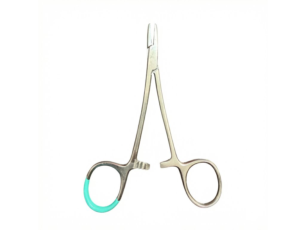 Drž rybu klidně a pokud možno ve vodě nebo na mokré podložce. Uchop háček co nejblíže k vpichu za dřík nebo oblouček a veď ho ven v ose, kudy šel dovnitř. Pracuj plynule, bez škubání – krátký rovný pean 12,5 cm dává jemnou kontrolu, takže stačí malý stisk. Jakmile je háček venku, rybu okamžitě pusť nebo bezpečně ulož. Nástroj po použití opláchni a osušíš, ať je připravený na další záběr.