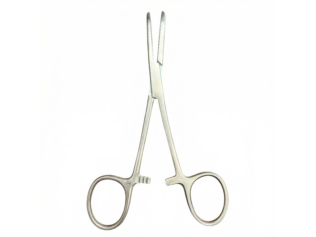 Zahnutý pean s dlouhou čelistí z nerezové oceli v délce 14 cm je nástroj na rychlou, jistou a šetrnou práci s háčkem. Zahnuté provedení ti otevře přístup k háčkům v úzkých místech a dovolí je kontrolovaně otočit bez zbytečného tlaku. Dlouhá čelist drží háček stabilně, takže vyproštění je čisté a bez nervů. Nerezová ocel dodá klid – nástroj si drží tvar, neláme se a nerezaví.