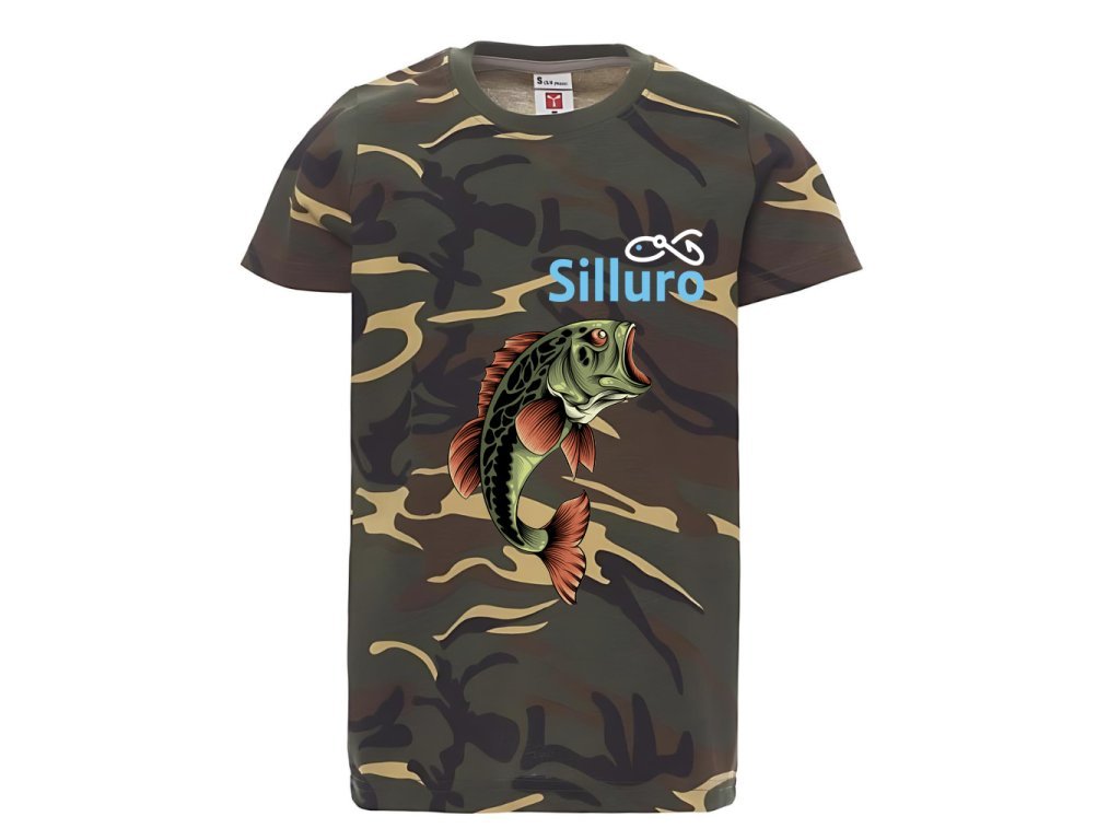Kvalitní bavlněné tričko camo s potiskem ryby