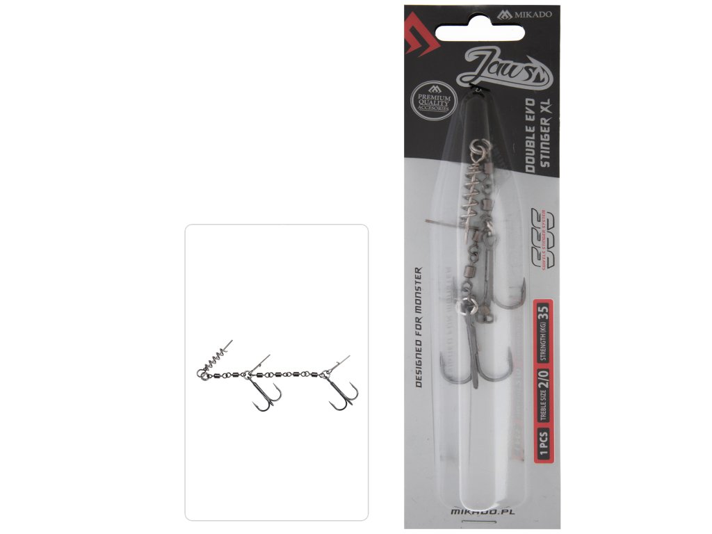 Tento dvojitý stinger se zavrtávačkou a kolíky představuje spolehlivé řešení pro lov s velkými gumovými nástrahami, kde je vyžadována maximální jistota při záseku i během zdolávání. Konstrukce stingeru je navržena tak, aby poskytovala extrémně pevné a stabilní uchycení, které zvyšuje efektivitu lovu především při cíleném lovu trofejních dravců.
